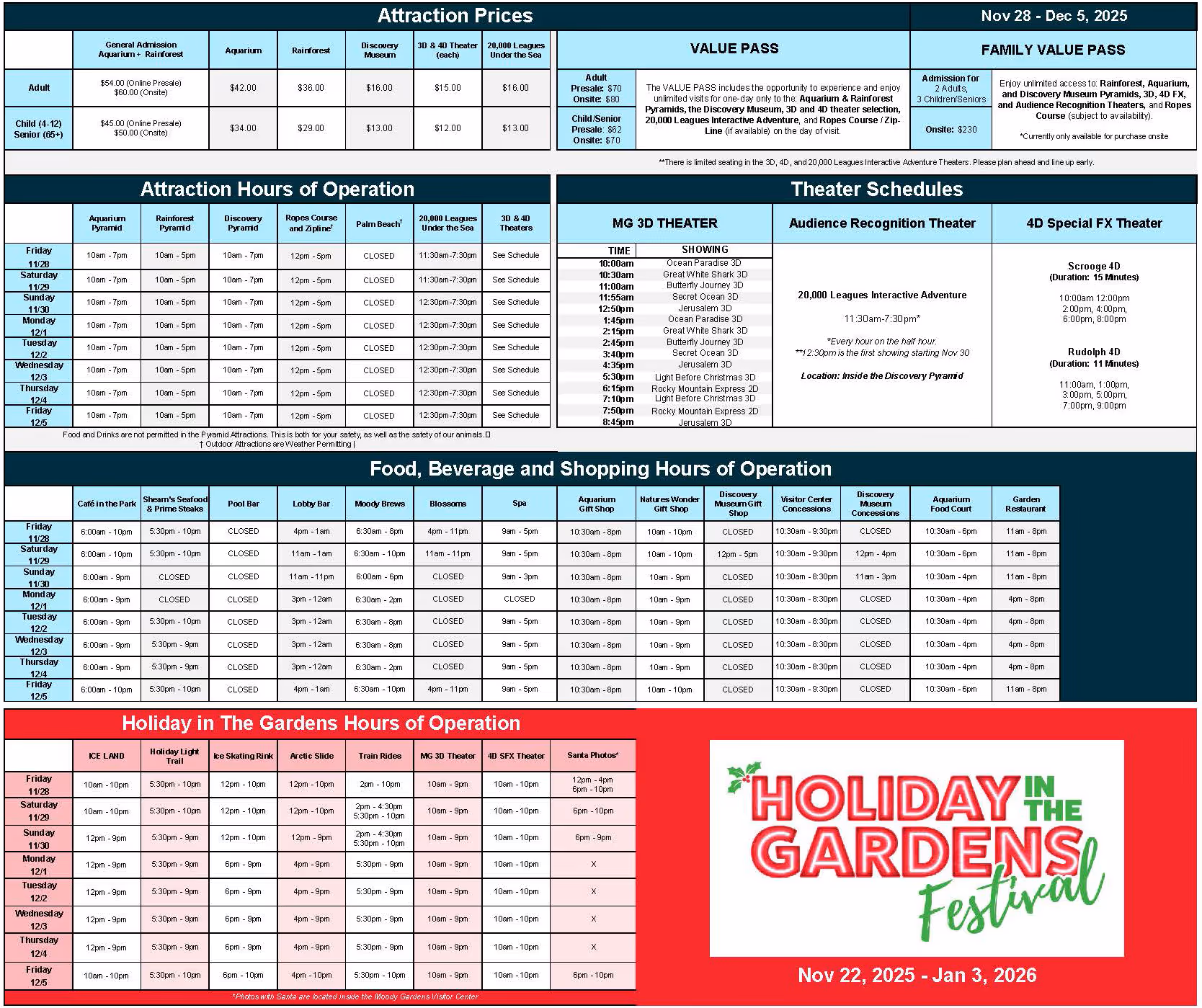 Nestled amidst breathtaking natural surroundings, Moody Gardens offers a perfect blend of relaxation and excitement for guests of all ages for work or play. From tropical rainforests to the oceans of the world, a wide range of attractions, educational activities, kid's events, dining options, and exciting entertainment await. This island resort uniquely accommodates large conferences, weddings and social events as well as being the romantic escape and family destination where special memories are created.